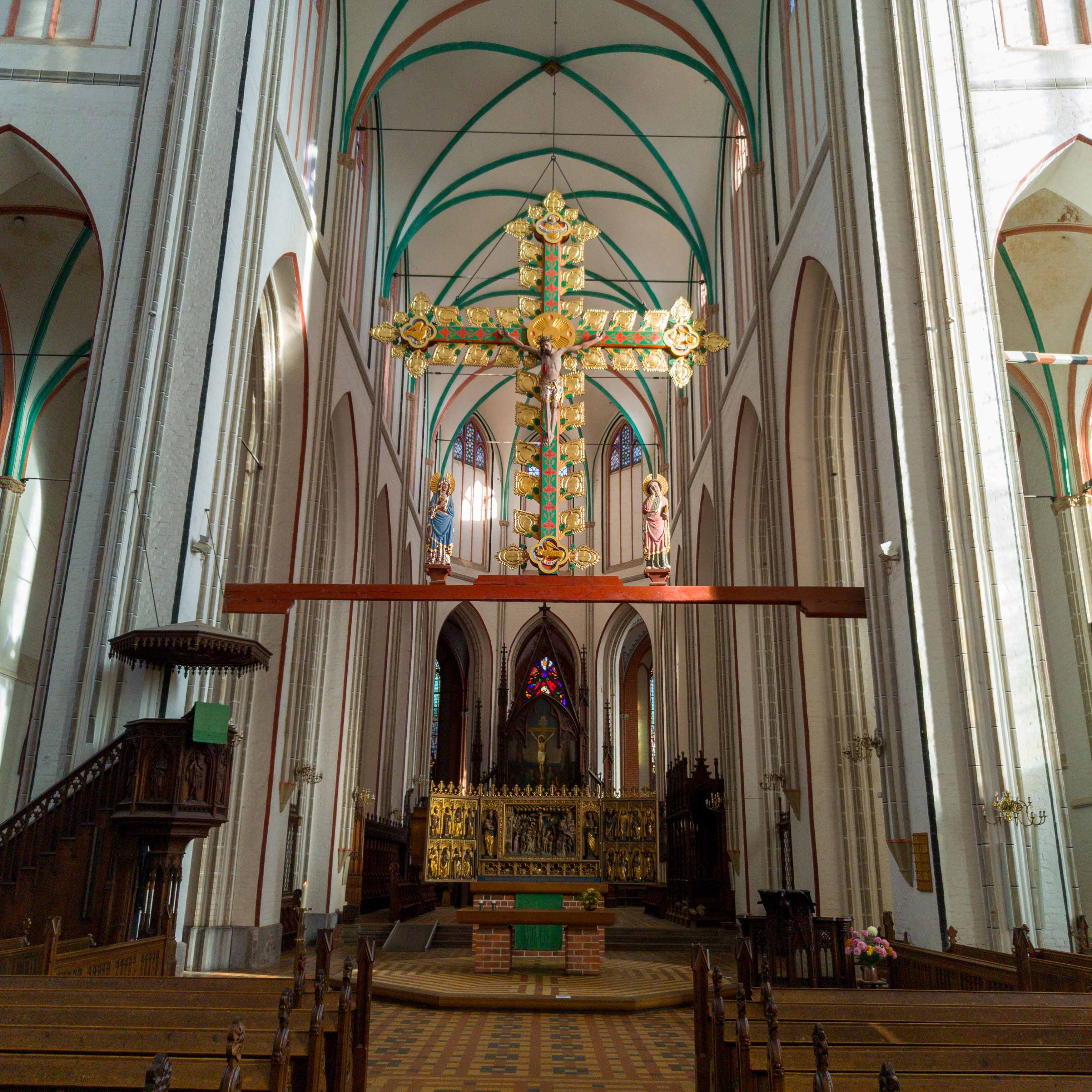 Anfang des Jahres hatte ich mir einen Grundsatz für Reisen vorgenommen: "No Churches”. Den musste ich heute leider brechen, denn diese gotischen Backstein-Kathedralen sind so mächtig, dass ich nicht umhin konnte, mal zu sehen, wie sie innen aussehen. Die erste hatte mehrere Überraschungen. Die eine war das fast Ortodox anmutenden Kreuz über dem Altar und ein weiteres der mix der Stilrichtungen in den Kirchenfenstern, das war wie ein Ritt durch die 1500 jährige Kunstgeschichte in einem Raum.