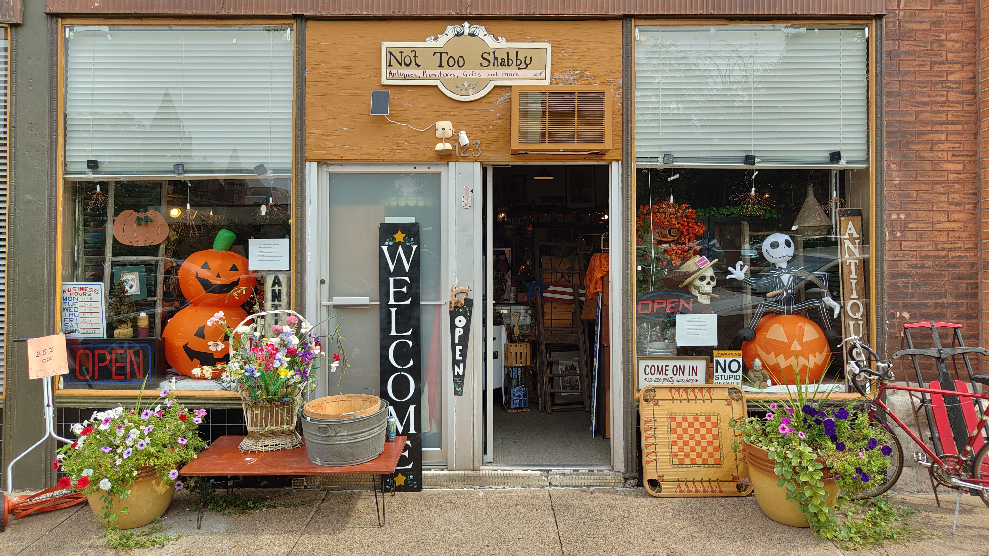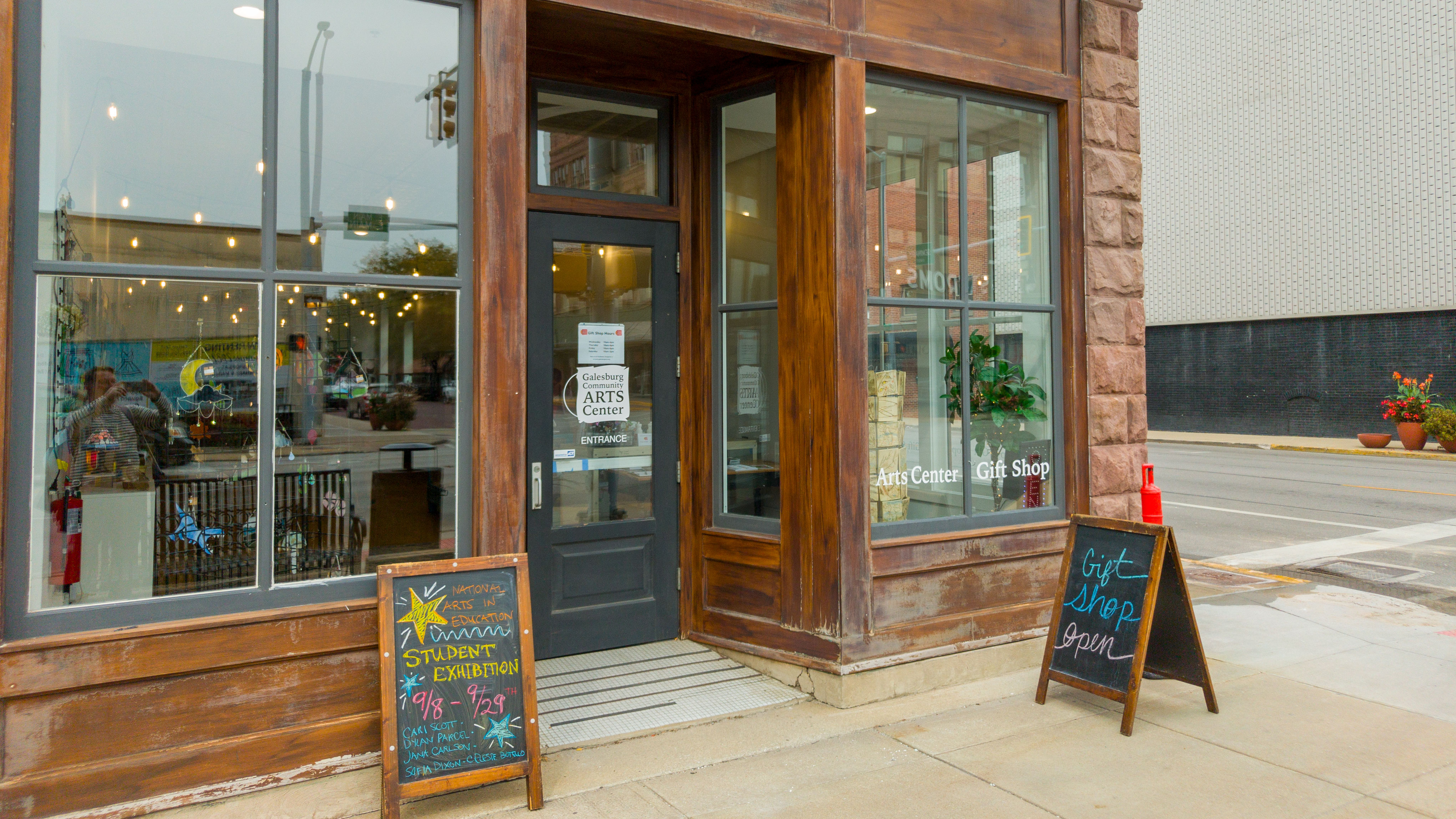 Einer Bibliothek und einem Buchgeschäft, einer Arts & Crafts Gallery, die eine tolle Ausstellung von Arbeiten aus der Highschool hatte.