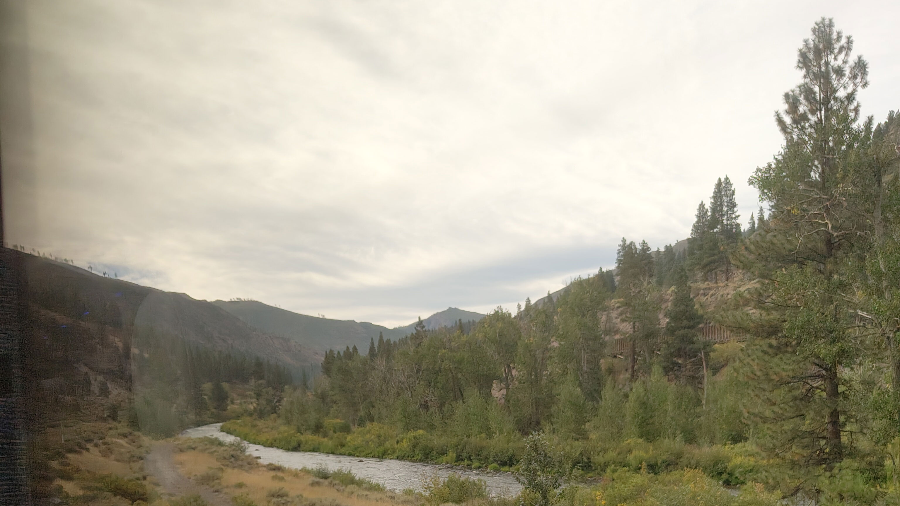Der Vormittag zog sich hin. Das größte Highlight war Reno und das wir eigentlich seit Sonnenaufgang durch Nevada gefahren sind. Für den Bahnhof fuhren wir in einen offenen Betontunnel hinein. Erst bei der Durchsage “all Doors are closed” merkte ich, dass das der Bahnhof war. So kurz nach 11 Uhr zum Lunch gegangen. Die Tische Gemeinschaft war genauso illuster als die vom Zug vorher.